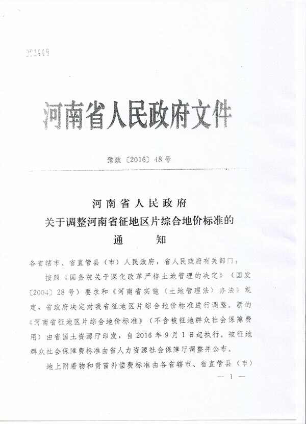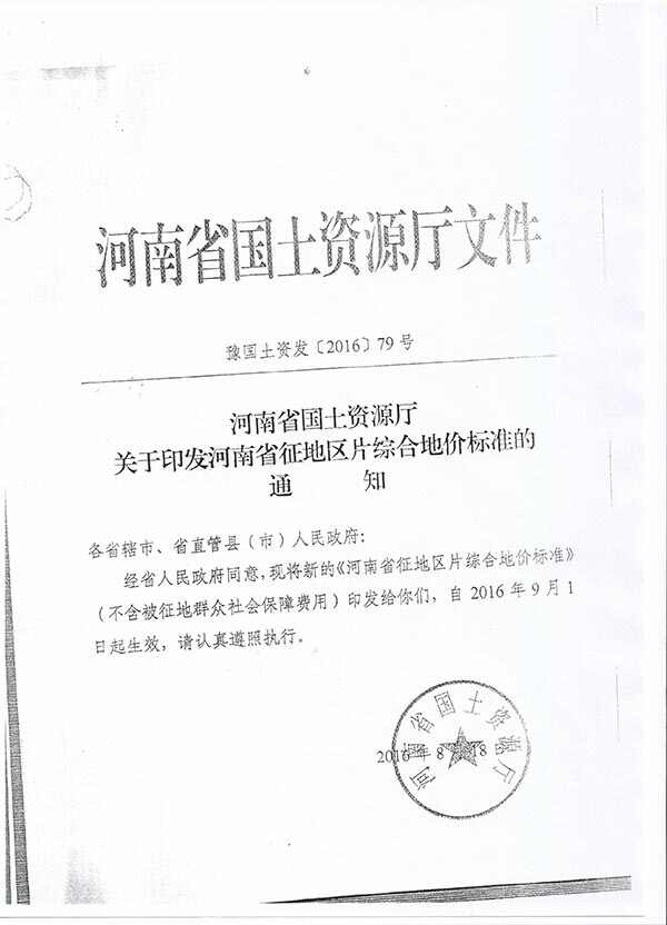 我县当前执行的征地区片综合地价是根据《河南省人民政府关于调整河南省征地区片综合地价标准的通知》(豫政{2016}48号)确定的标准测算的。相关文件附后。