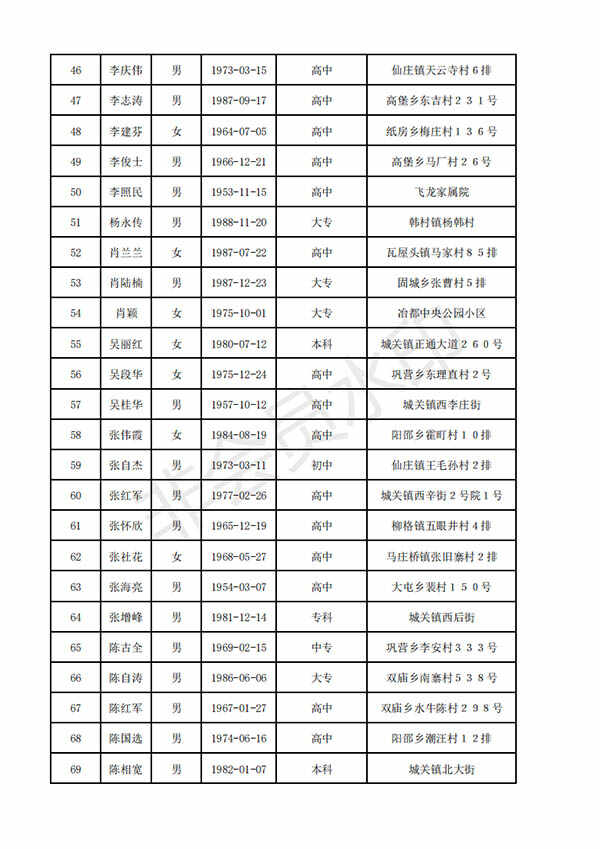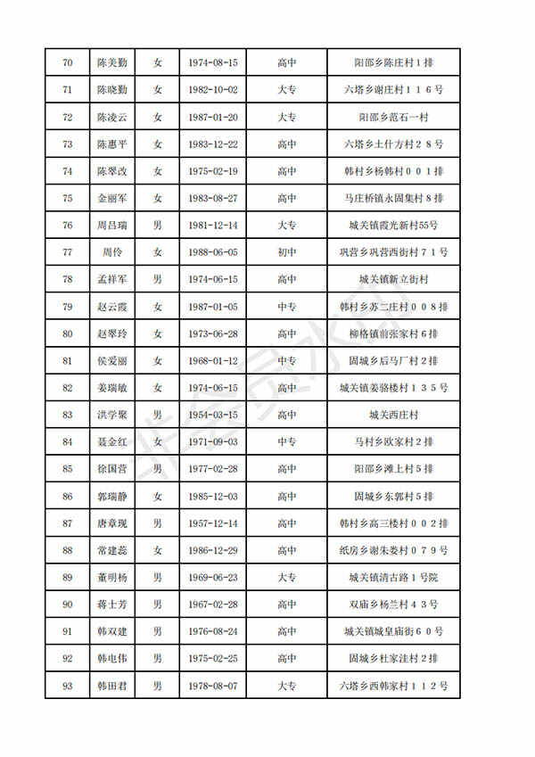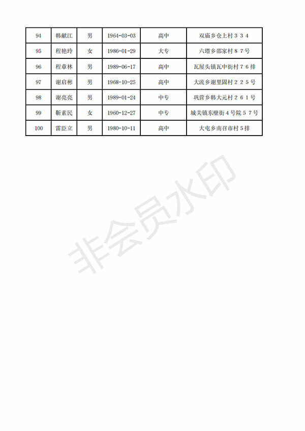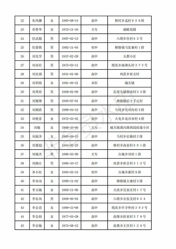 附:清丰县拟任命人民陪审员名单(100人)