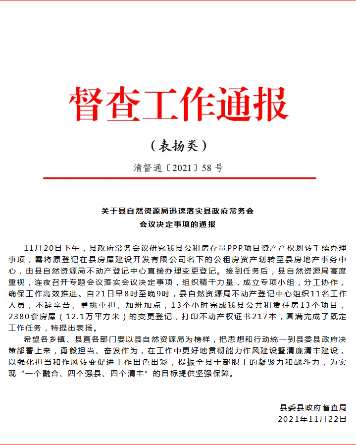 关于县自然资源局迅速落实县政府常务会会议决定事项的通报