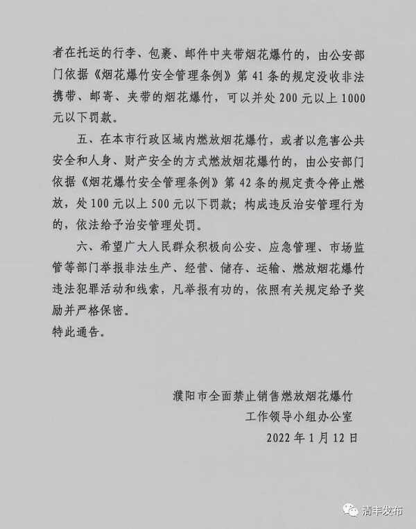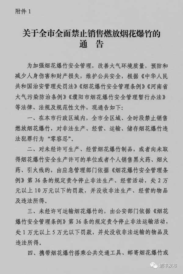 【禁燃禁放】关于全市全面禁止销售燃放烟花爆竹的通告