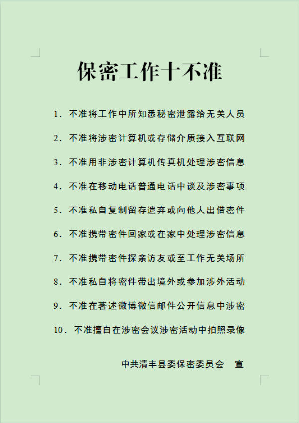 保密工作十不准