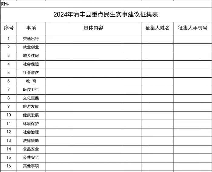 附件:2024年清丰县重点民生实事建议征集表