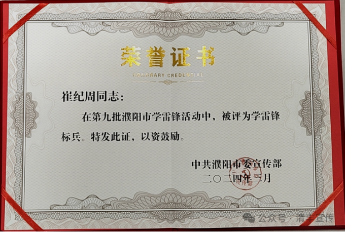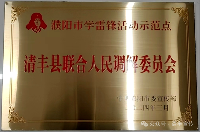 近日,中共濮阳市委宣传部命名了第九批濮阳市学雷锋活动示范点行业岗位学雷锋标兵,其中,清丰县联合人民调解委员会荣获濮阳市学雷锋活动示范点,清丰县退休教师崔纪周荣获濮阳市岗位学雷锋标兵。