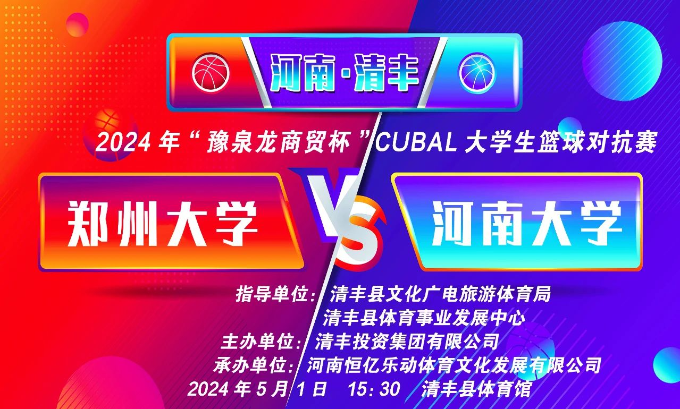 5月1日下午,2024年“豫泉龙商贸杯”CUBAL大学生篮球对抗赛将在清丰县体育馆对决,欢迎篮球爱好者前来观看比赛!