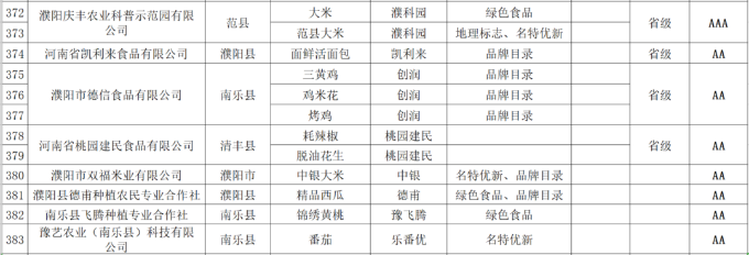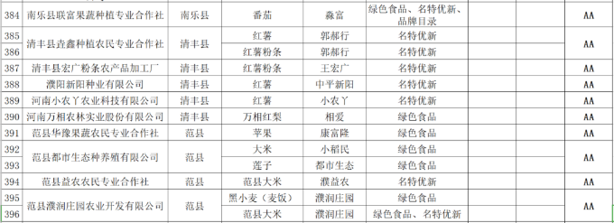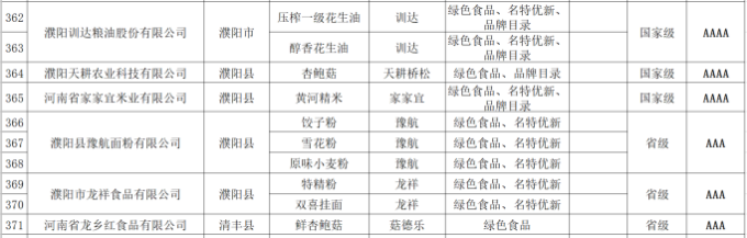 根据《河南省农业区域公用品牌“豫农优品”商标及标识管理办法》要求,河南省农业农村厅坚持公开公平公正,自愿申报、权威检测、专家评审、规范许可、无偿使用、动态管理的原则,组织开展了首批“豫农优品”商标及标识使用人名录认定工作。在企业自愿申报、县级审查确认、市级初审推荐的基础上,经省级审查认定首批“豫农优品”商标及标识使用人名录378家企业718个产品,现予以公示。