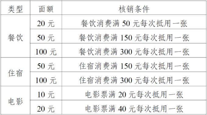 云闪付平台可领取餐饮、住宿、电影消费券,电影消费券可在线下影院和线上猫眼App购票使用;支付宝平台可领取餐饮、住宿消费券。