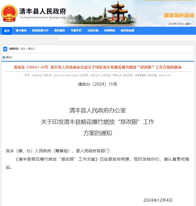 《清丰县烟花爆竹燃放“禁改限”工作方案》已经县政府同意,现印发给你们,请认真贯彻落实。