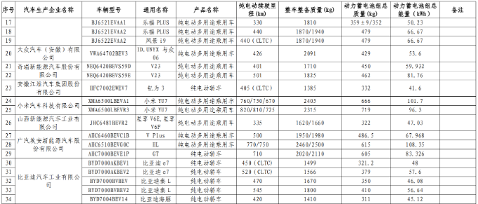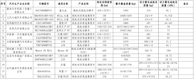 减免车辆购置税的新能源汽车车型目录(第十四批)纯电动汽车-乘用车车型如下: