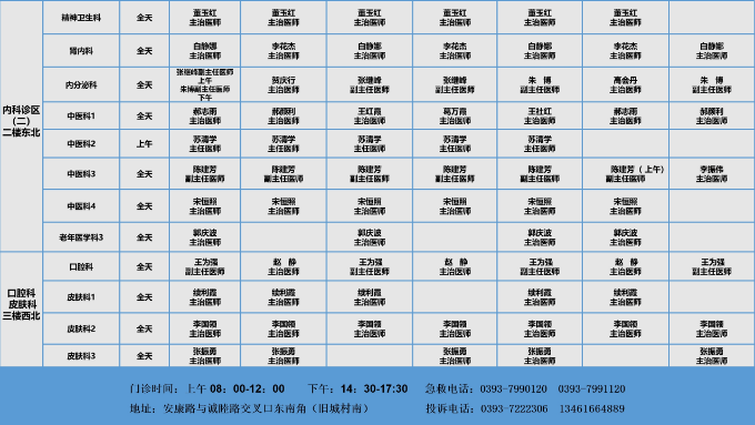 该院医师承担着外出会诊、学术交流、教学培训、帮扶义诊等任务,部分医师坐诊时间会临时调整,请以实际情况为准。