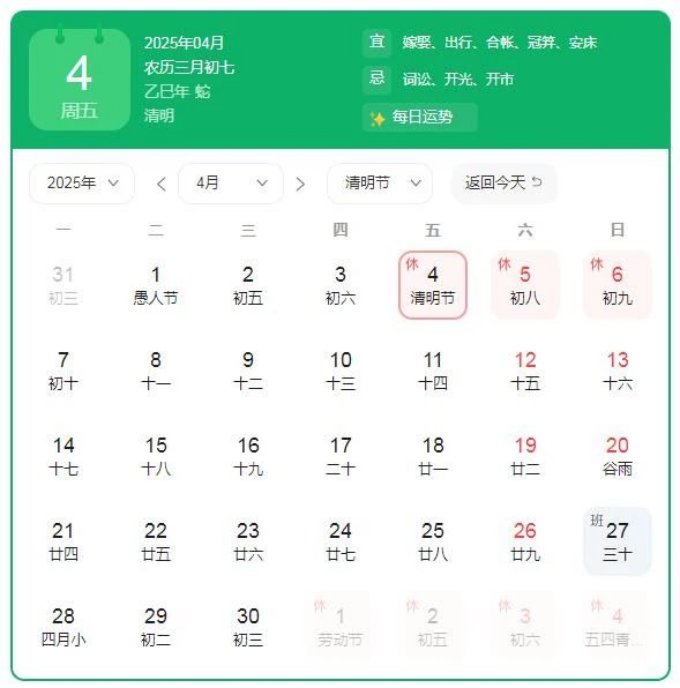 清明节放假时间