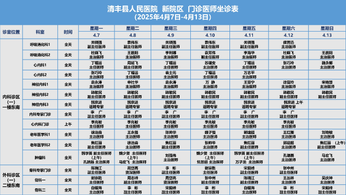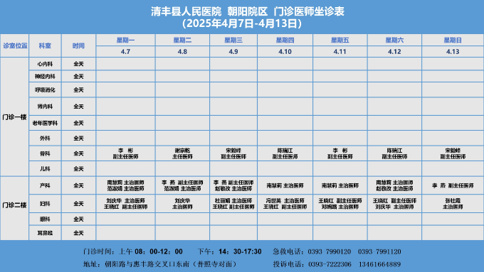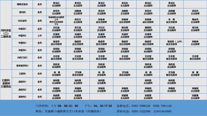 我院医师承担着外出会诊、学术交流、教学培训、帮扶义诊等任务,部分医师坐诊时间会临时调整,请以实际情况为准。