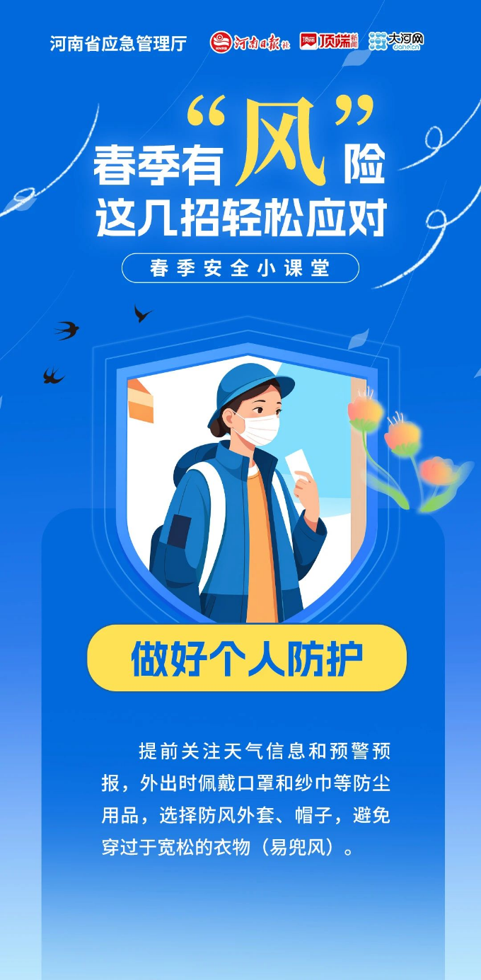 河南省气象台2025年4月10日16时发布大风黄色预警:受较强冷空气影响,预计4月11日8时到13日20时,全省自西北向东南先后转西北或偏北风5到6级,阵风8到9级,其中安阳西部、鹤壁西部、新乡西部、焦作、济源、三门峡、洛阳中南部、郑州西部、许昌西部、平顶山西部、南阳北部、信阳南部部分县(市、区)阵风10到11级,局地可达12级。全省大部伴有浮尘或扬沙。