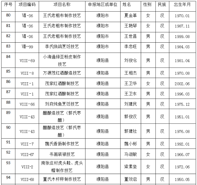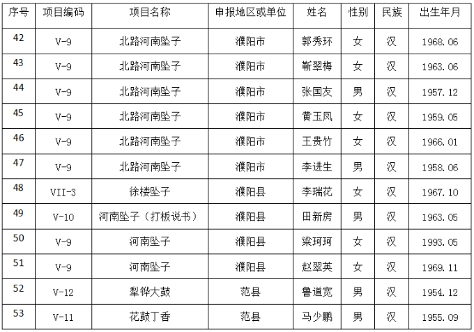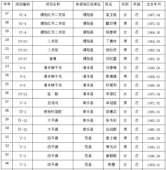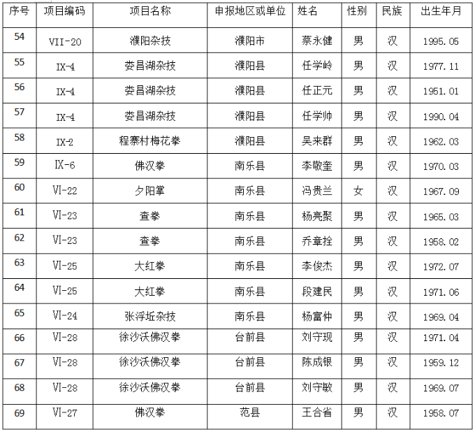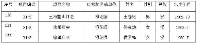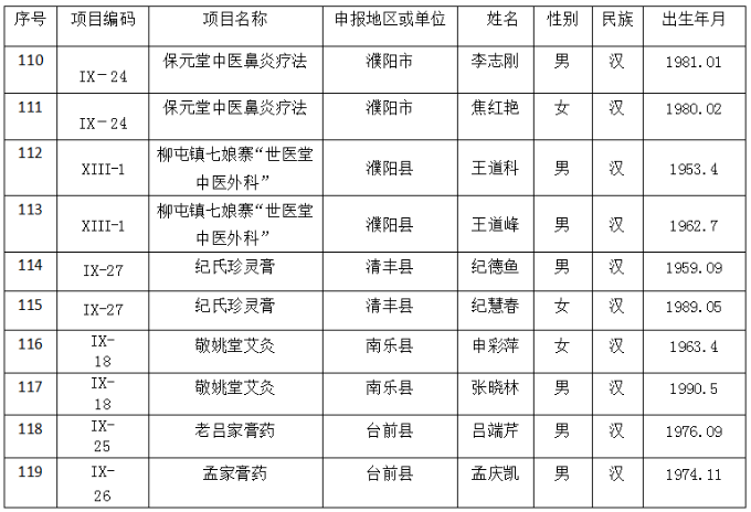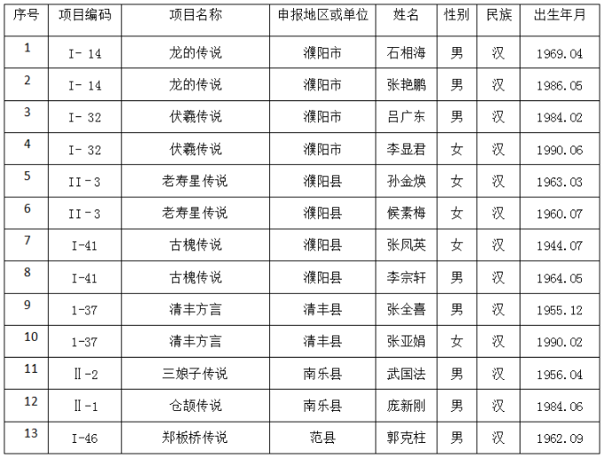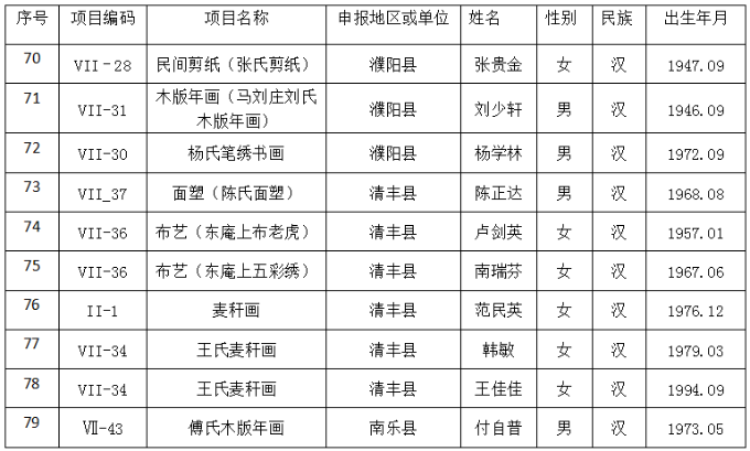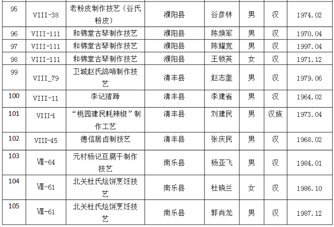 第五批濮阳市非物质文化遗产代表性传承人名录