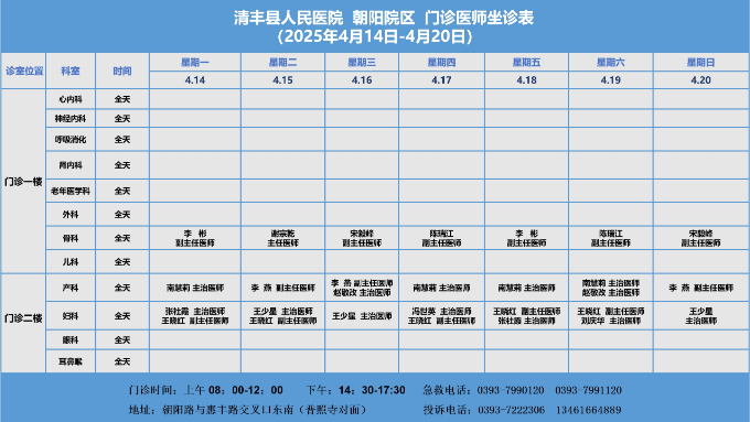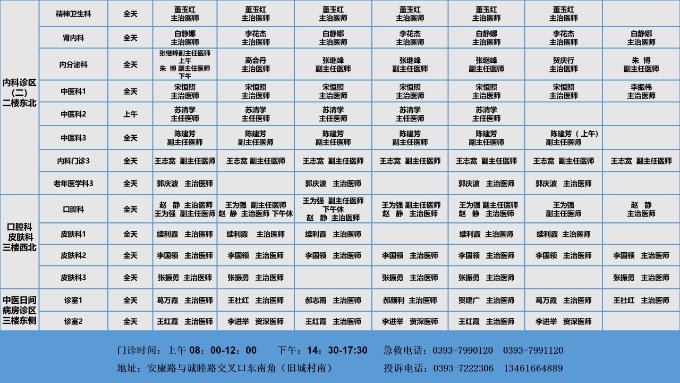 我院医师承担着外出会诊、学术交流、教学培训、帮扶义诊等任务,部分医师坐诊时间会临时调整,请以实际情况为准。