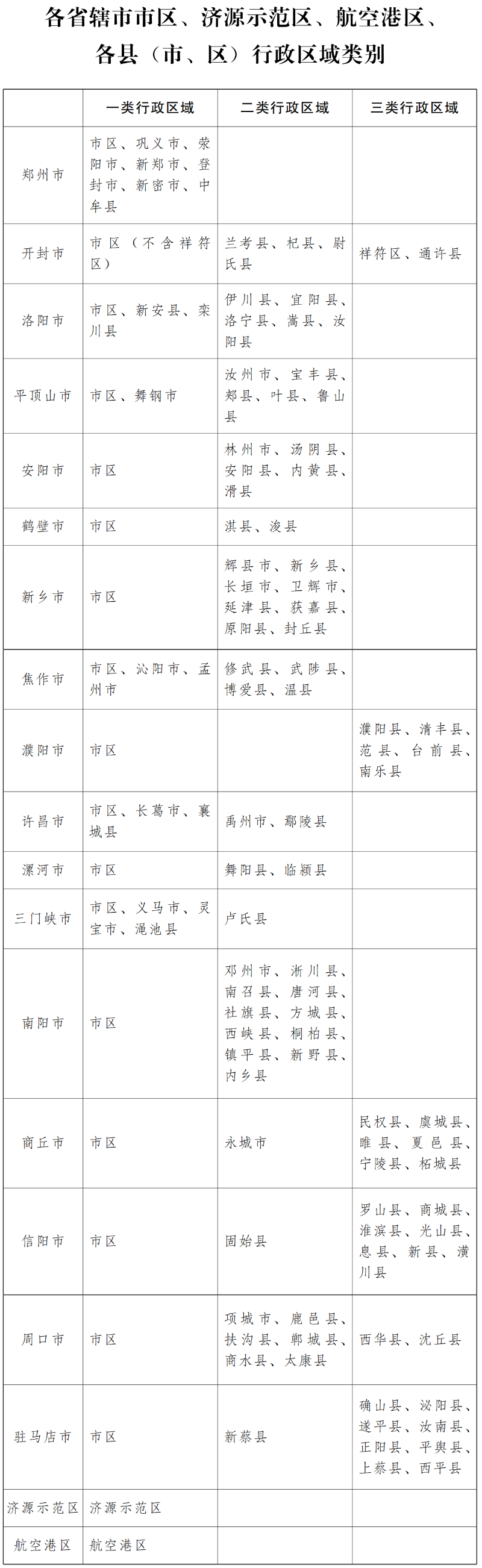 附件:各省辖市市区、济源示范区、航空港区、各县(市、区)行政区域类别
