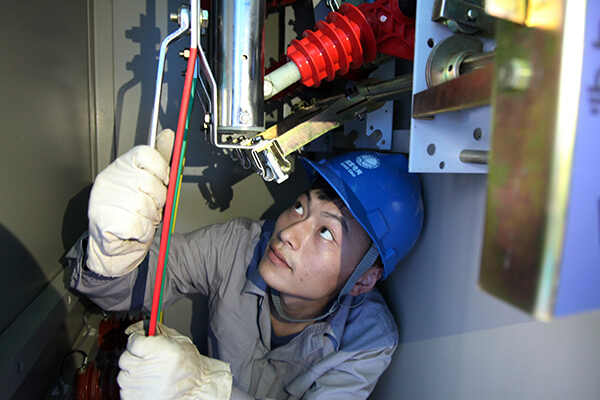 图为:7月7日,该局工作人员在小区计量柜内紧固母排螺丝