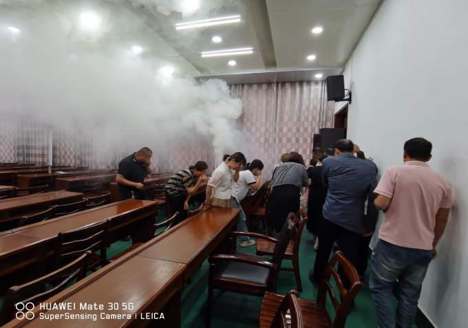 会后,组织所有人员进行了消防逃生实战演练。现场燃放了烟雾弹,按照演练预案,指挥员指挥现场人员迅速、有序撤离,切实提高了我县运输行业从业人员应急处置能力及险情逃生技巧。