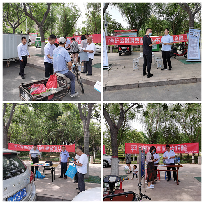 为进一步推动我县社会信用体系建设,提高社会公众诚信意识,推广和普及征信知识,我县举办了“6.14信用记录关爱日”宣传活动。今年宣传的主题为“贯彻落实《河南省社会信用条例》共建美好诚信社会”。活动由县发改委牵头组织,县人行、县市场监督管理局、县城市管理局、县生态环境分局、县住建局、县人民法院、县司法局、县税务局、县教育局等18家单位及由人行牵头的8家金融机构参加了本次活动。活动中,清丰县信用体系建设各成员单位通过设立咨询台、展板,悬挂诚信宣传条幅,发放宣传折页等多种形式,结合各自工作职能,围绕社会信用体系建设规划纲要等方面向群众进行了宣传。本次活动累计悬挂宣传条幅26条、制作展板50余块、发放《河南省社会信用条例》读本500余本,宣传页5000余份。通过宣传旨在营造学条例、用条例、守条例的浓厚氛围,从而形成诚实守信、重信践诺的良好社会风尚,为加快我县社会信用体系建设步伐起到了积极推进作用。