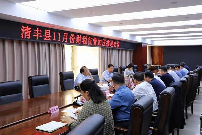11月2日,县委副书记、县长赵丹召开清丰县11月份财税征管加压推进会议,听取了县税务局关于我县11月份税收征管计划的汇报。县委常委、常务副县长程春艳,县开发区党工委书记师敬川,县政府办、督查局、财政局、税务局、自然资源局、房产中心、住建局、水利局、国资集团等单位负责同志参加。