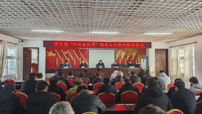 12月19日上午,清丰县委组织部联合邮储银行清丰县支行在阳邵镇举行“兴村富民”创业人员集中授信仪式,县委组织部、阳邵镇和清丰邮储银行负责人出席,阳邵镇各村党支部书记、优秀经营户参加。