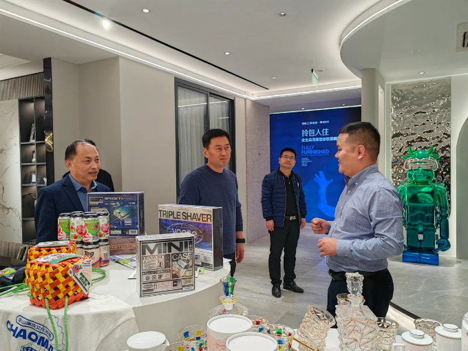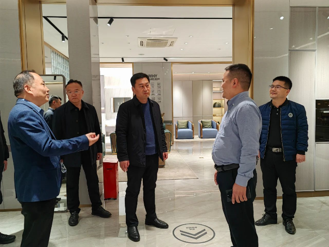 赵丹一行参观了仁豪家居展厅,详细了解公司发展历程,并进行了深入交流,初步达成合作意向。