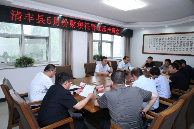 5月11日,县委副书记、县长赵丹主持召开清丰县5月份财税征管加压推进会。县先进制造业开发区党工委书记师敬川,县政府办、督查局、财政局、税务局、自然资源局、房产中心、国资集团、投资集团等单位负责同志参加。