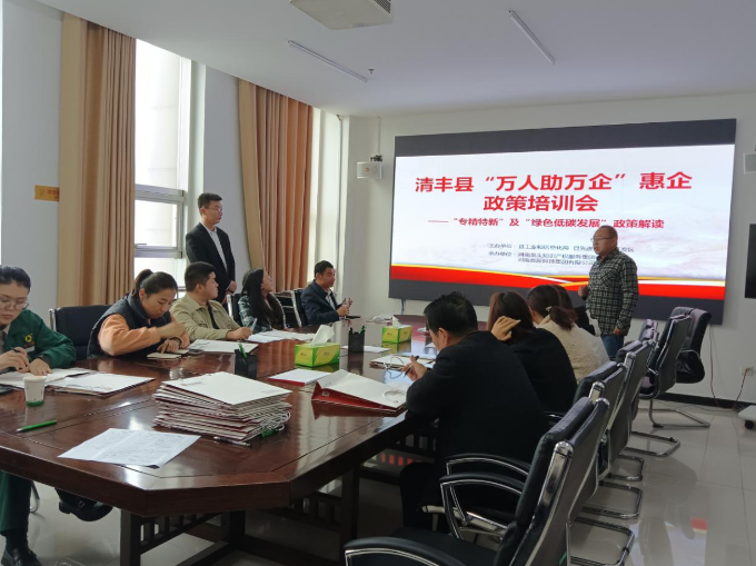 为全面深化“万人助万企”活动,10月31日,清丰县工信局联合县开发区举办清丰县“专精特新”中小企业和绿色低碳发展政策解读培训会。会议邀请了河南省科技咨询协会高级咨询师陈东升、河南政辰科技集团有限公司苏阳进行授课,全县40余家规上企业主要负责人参加了培训。