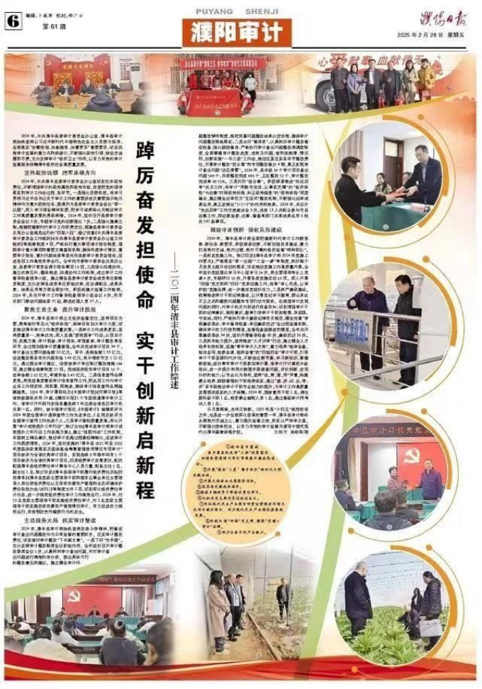日月春晖渐,光华万物新。2025年是“十四五”规划收官之年,也是进一步全面深化改革的重要一年,清丰县审计局将永葆绝对忠诚之心,着力提升监督之效,夯实从严治审之基,不断强化使命担当,以有力有效的审计监督为谱写中国式现代化的清丰篇章保驾护航。