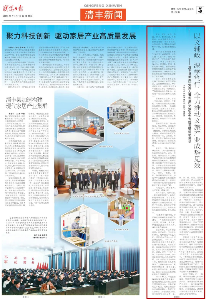 11月17日,《濮阳日报》刊发清丰县委办“党办人看发展”文旅文创专题调研活动侧记文章,原文如下: