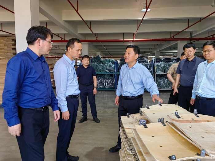 在万宝科技,参观了椅子生产车间、自动化装箱系统,了解了产品出口情况。赵丹表示,清丰拥有大量扶贫车间,产业工人数量多、人工成本低,可考虑将部分生产环节搬迁到清丰,实现合作共赢。