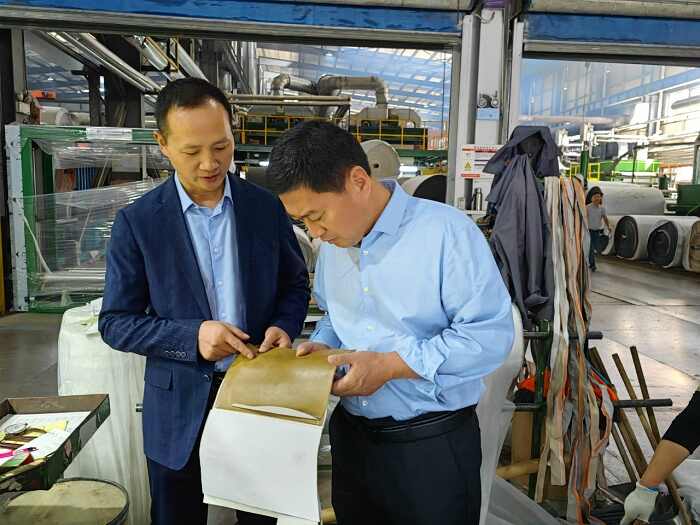 在浙江路联新材料集团股份有限公司,参观了PVC工程墙布、PVC人造革等产品、生产流程。赵丹表示,濮阳市化工材料丰富,可有效降低成本,欢迎到清丰投资兴业。