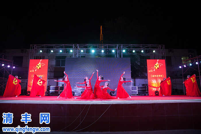“我志愿加入中国共产党,拥护党的纲领,遵守党的章程……”,在新老党员掷地有声的誓词声中,整场晚会拉开帷幕。此次演出共分为“峥嵘岁月”、“复兴之路”、“光荣与梦想”三个篇章,第一篇章“峥嵘岁月”中,女声小合唱《十送红军》、男声四重唱《游击队歌》、豫剧《江姐》选段《绣红旗》和男声独唱《追寻》四个节目,演员情真意切的表演,仿佛又把人们带回了那个硝烟弥漫的战争年代,展现了党的光辉历程,歌唱党的丰功伟绩,抒发人民群众对党的无限热爱;第二篇章“复兴之路”中,舞蹈《爱我中华》、歌曲联唱《春天的旋律》、豫剧《村官李天成》选段《当一个问心无愧的共产党员》、男女二重唱《走向复兴》,向观众展现了中国共产党带领人民走向改革开放、走向民主富强的波澜壮阔的豪迈情怀;第三篇章“光荣与梦想”中,女声独唱《我的中国梦》、男声独唱《把一切献给党》、歌伴舞《托起金色的希望》,抒发了全县人民爱党爱国的热情,干事创业的激情,再铸宏伟业绩、再谱新篇章的壮志豪情。