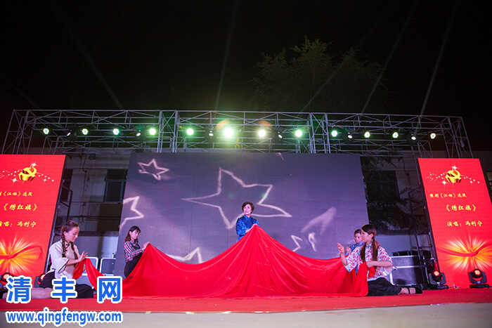 本网讯 祝福如歌,曲曲悠扬;红歌颂党,句句情长。为纪念中国共产党成立93周年,重温党的光辉历程,讴歌党的丰功伟绩,抒发爱党爱国热情,6月30日晚,由县委组织部、县委宣传部、县文明办、县文化广电旅游局、县公安局主办的“我们的旗帜”庆七一广场文艺晚会在清丰乐园精彩上演。