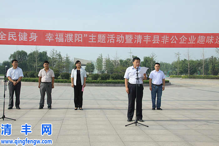 本网讯 在我国第六个“全民健身日”到来之际,8月8日上午,由清丰县委统战部、县产业集聚区管委会、共青团清丰县委、县体育运动中心、县工商联联合举办的“全民健身 幸福濮阳”主题活动暨清丰县非公企业趣味运动会在县人民广场举行。