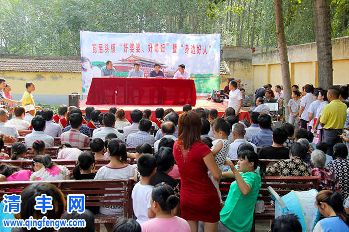 本网讯 8月21日上午,瓦屋头镇在赵家村文化大院组织召开“好婆婆、好媳妇”及“身边的好人”表彰大会。县委宣传部副部长李发民、镇党委书记申永杰、党委副书记王洪配、纪委书记鲁振军在主席台就坐。33个行政村支部书记、20名受到表彰的“好婆婆、好媳妇”、“身边的好人”、清丰县戏迷协会和部分赵家村群众共计260多人参加了此次表彰大会。