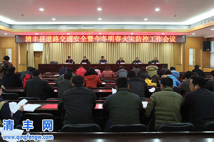 县政府副县长岳洪波在会上提出要求,冬季已经到来,群众用火、用电、用油、用气大量增加,历来是火灾和道路交通安全多发、高发季节,加上节庆活动多,如圣诞、元旦、春节、元宵节、两会期间人流车流物流大、燃放烟花爆竹多,导致引发火灾事故和道路交通事故的风险剧增。各级各部门要进一步增强做好这两项工作的使命感和责任感,认真分析研判本地区道路交通和消防安全形势,查找冬季火灾防控薄弱环节,排查道路安全隐患,周密部署,消除盲点,推动我县道路交通安全和今冬明春火灾防控工作扎实开展,确保不发生有影响的道路交通和火灾安全事故。各级各部门要抓紧制定有效措施,做好以下工作。一是盯紧看牢重要场所、重点部位。二是对未整改销案的重大火灾隐患复查。三是严格执法,坚决查处道路交通和冬防违法行为。四是加大道路交通安全隐患排查整治力度。各级各部门要以“一创双优”活动为契机,以“担当、敬业、服务”标准要求,通过扎实有效的措施把各项工作落到实处,真正把道路交通和消防安全事故发生率降下来,维护好道路交通和冬防安全形势的稳定,把人民群众的安全感和满意度提升上去,为建设富裕文明平安美丽新清丰做出积极贡献!