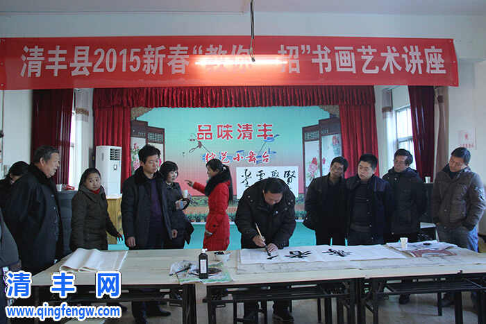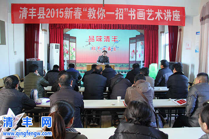 本网讯 2月5日,由县委宣传部、县文广局主办的2015新春“教你一招”书画艺术讲座在县文化馆多功能厅举行,吸引了我县50余名基层艺术骨干以及书画爱好者前来参加。