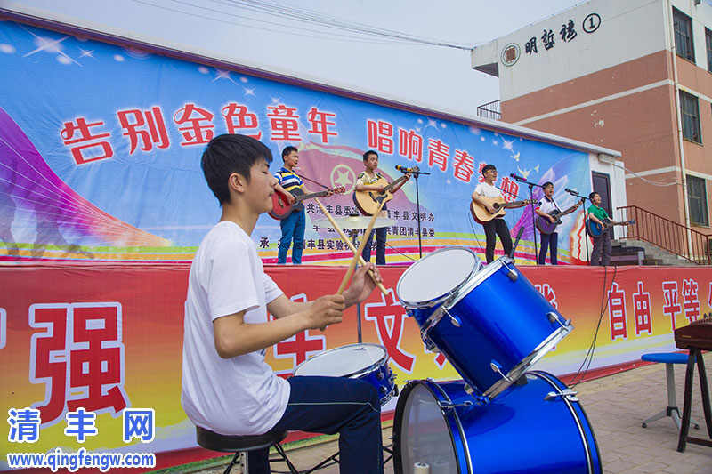 在此次活动中县实验初级中学校长周彦伟做青春致辞,县实验初级中学学生朗诵《告别金色童年,唱响青春梦想》,师生们还一起表演了乐器演奏《我相信》,合唱《社会主义核心价值观》歌谣,团县委书记王庆敏为实验中学学生代表佩戴团徽,集体学生做青春宣誓。