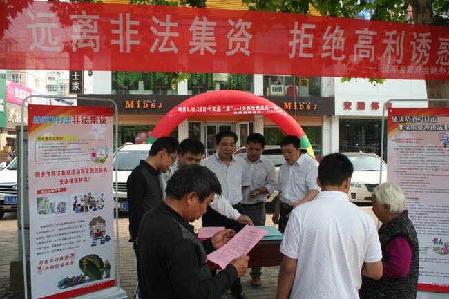 5月16日上午,清丰县组织县政府金融办、人行、公安、工商、工信、发改、农业、商务等有关部门和辖区内各金融融机构在县金桥商业广场举行防范和打击集中宣传活动。县委常委、常务副县长杨理宏、市银监局二科科长周站强出席。