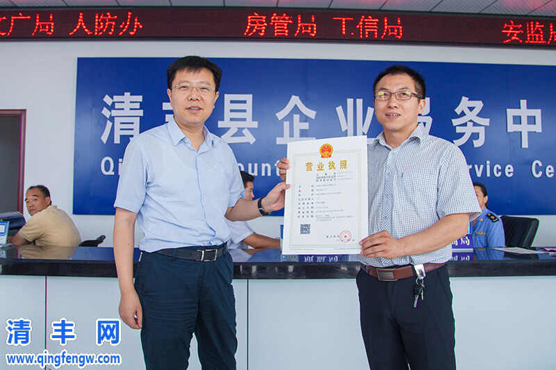 县长冯向军在颁发营业执照时,亲切地询问该公司负责人工商部门办理营业执照的效率等情况后指出,推行“三证合一”标志着商事登记制度改革又向前迈了一大步,其最大限度地提高了办事效率,为大众创业提供更加便利的服务,对服务清丰经济发展、优化投资环境起到良好的促进作用。