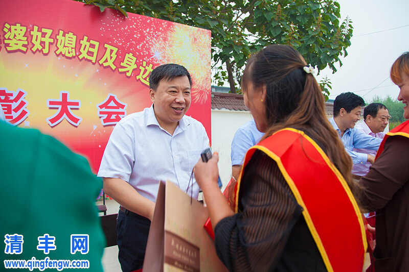 县委常委朱腾强为获得表彰的“好婆婆”、“好媳妇”和“身边的好人”颁发证书和奖品。