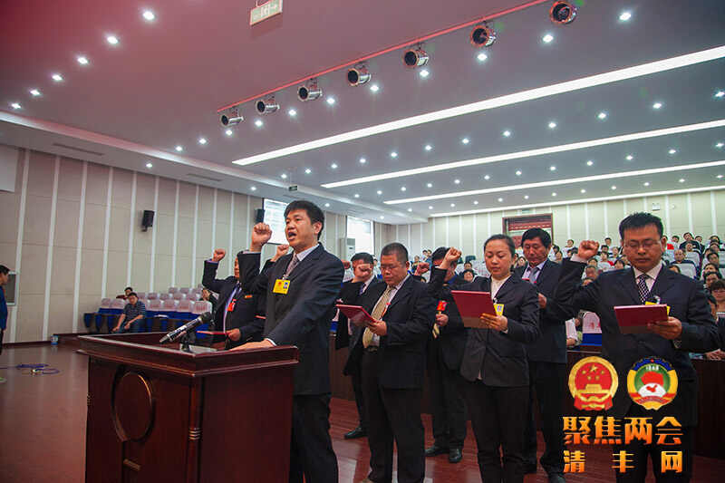 根据《清丰县国家工作人员宪法宣誓办法》的规定,大会选举产生和表决通过的国家工作人员向宪法进行了宣誓。