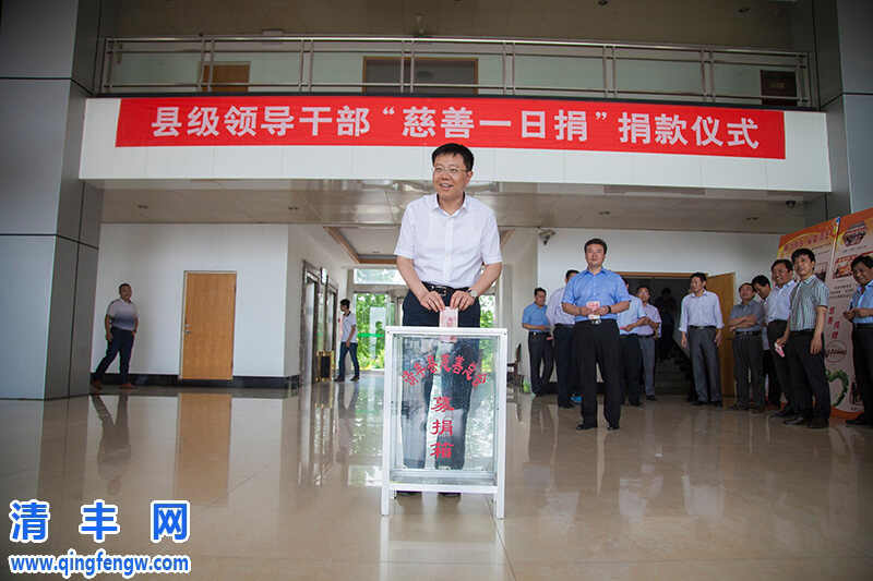 本网讯 6月1日,县级领导干部“慈善一日捐”捐款仪式在综合楼一楼大厅举行。县长冯向军,县委副书记刘兵,县政协主席杨理宏,县委常委、纪委书记蔡洪峰,县委常委、政法委书记惠晓杰,县委常委、县委办公室主任戚士杰,县委常委、宣传部部长朱腾强等县领导参加活动。
