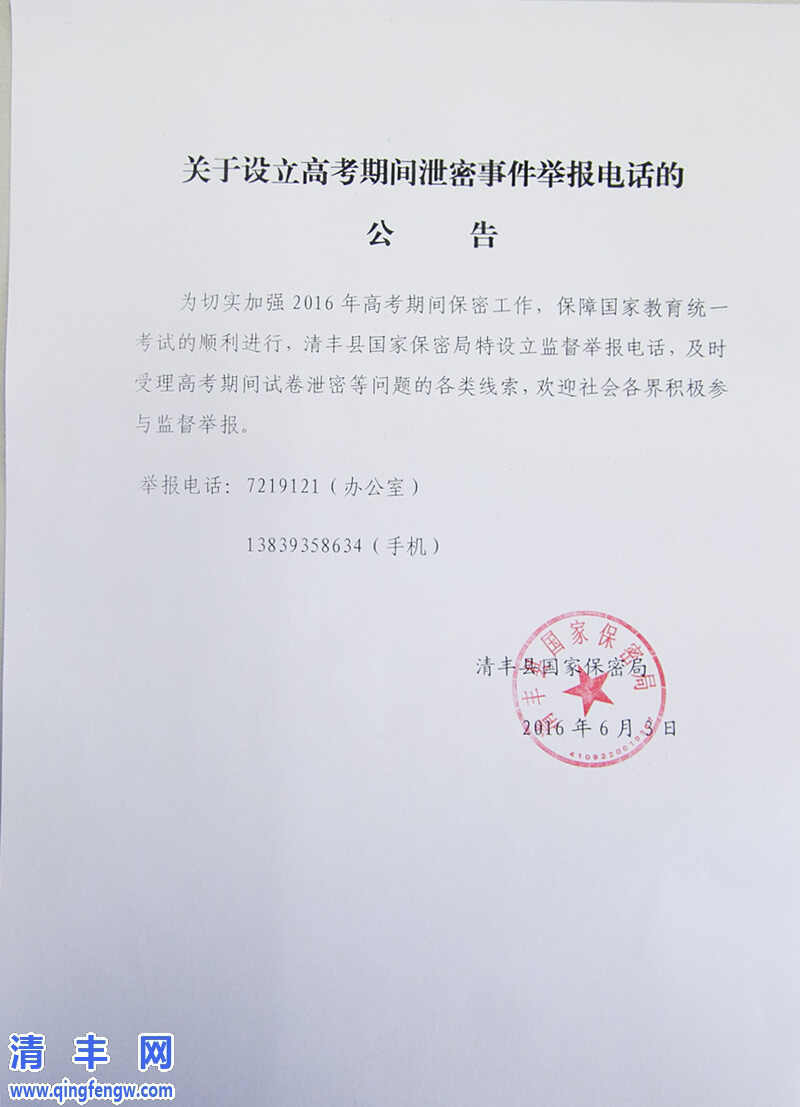 关于设立高考期间泄密事件举报电话的通知