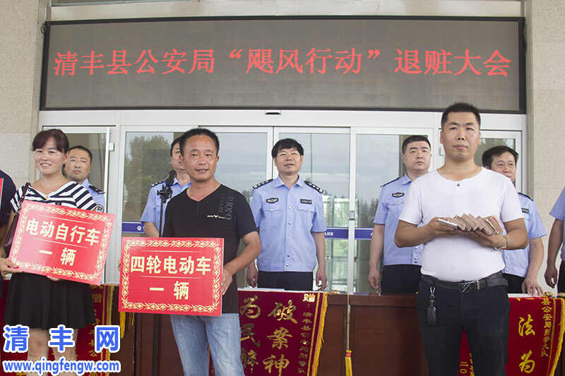 活动上,县公安局相关负责同志介绍了公安机关打击多发性侵财犯罪和盗抢骗犯罪成果。之后,公安干警向失主公开发还了近期被公安机关缴获的部分被盗汽车、电动车、三马车、电脑、现金等物品。