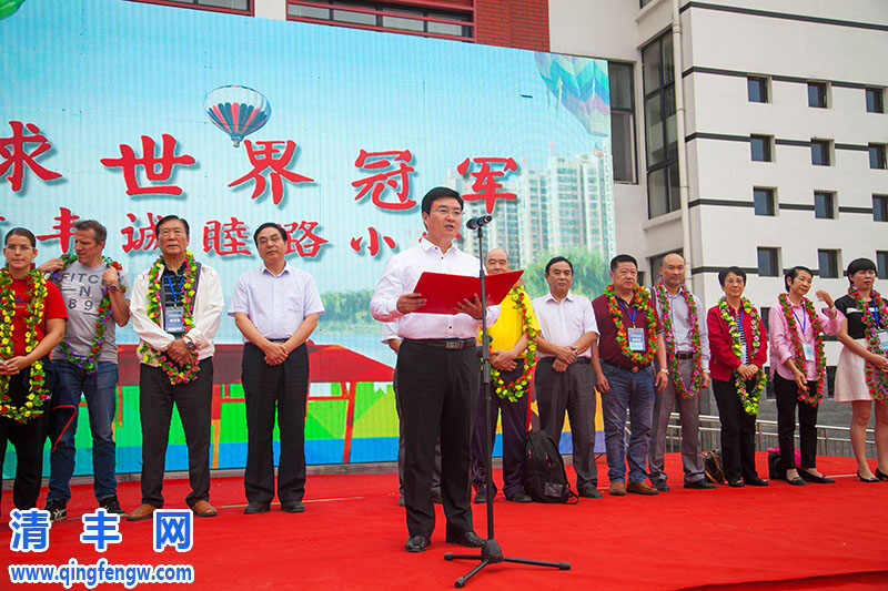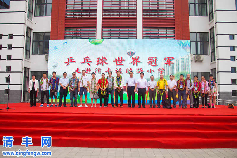 在诚睦路小学,世界冠军们刚一下车,少先队员就为冠军敬献花环,道路两旁学生手持欢迎牌及啦啦彩带夹道欢迎。紧接着,我市青年古琴演奏家张中亚和40个学生身着汉服表演汉式迎宾礼。数十名学生身着活泼的运动服装,表演乒乓球操《舞动乒乓》。世界冠军进入大厅签名,受到清丰县许多球迷的拥护,大家争相拍照签名。最后,我县的许多球迷与世界冠军们乒乓球室打球互动,世界冠军们指导青少年乒乓球训练,促进我县乒乓球运动竞技水平的提高,也是对清丰体育事业及各项工作的鼓舞和支持。
