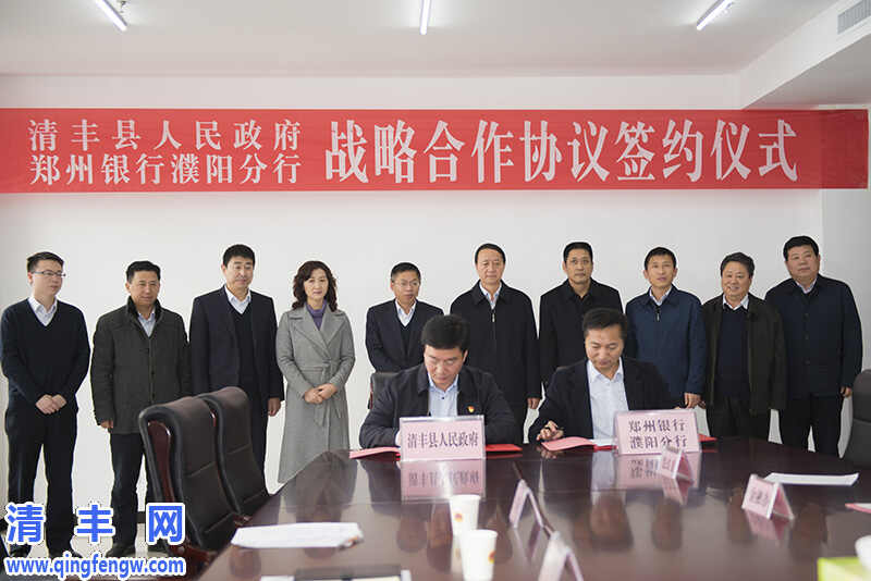 12月13日,清丰县人民政府与郑州银行濮阳分行举行战略合作协议签约仪式。县长刘兵,县人大常委会主任冯海民,县政协主席杨理宏,县委常委、常务副县长王军利出席会议。郑州银行濮阳分行行长董为民带领银行中高层出席签约仪式。县长刘兵与郑州银行濮阳分行行长董为民签署了战略合作协议。