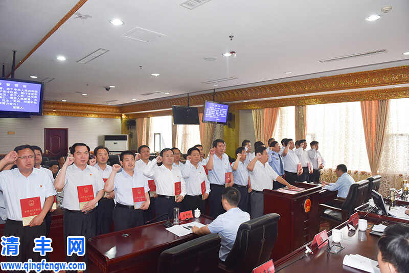 会议依法表决通过了县政府工作部门负责人的人事任免案,杨理宏主任为通过任命人员颁发了任命书,通过任命人员举行了宪法宣誓仪式。