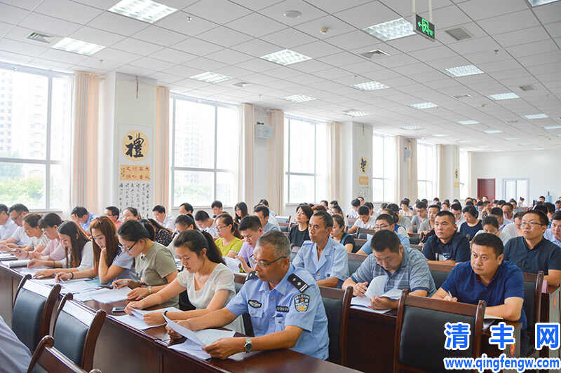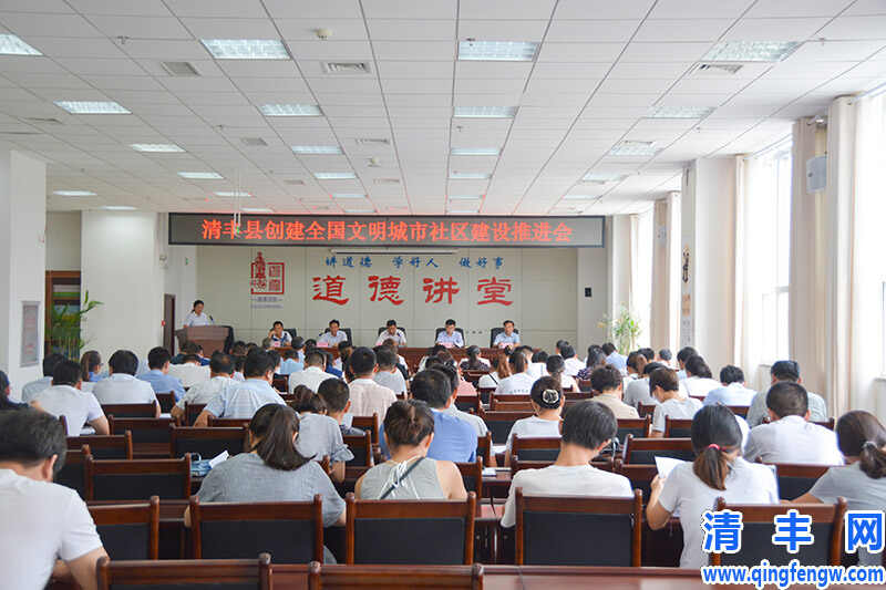 7月25日,我县召开创建全国文明城市社区建设推进会,清华社区等在内的6个社区的组成人员、各分包社区及分包成型小区的责任单位负责人以及文明办部分成员共计80余人参加会议。