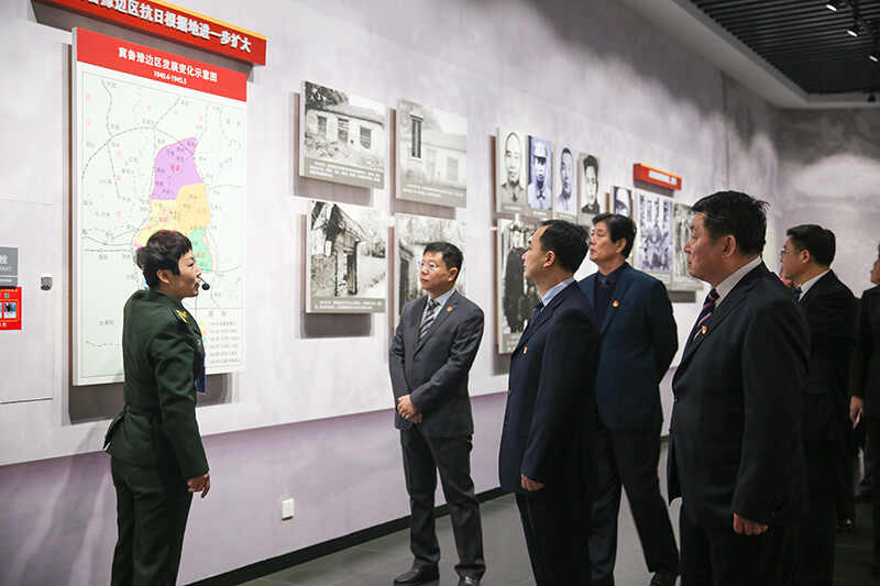 何雄一行走进冀鲁豫边区抗战史实展馆,参观馆内历史陈列,认真听取讲解。一幅幅图片、一件件实物,生动展示了单拐村作为冀鲁豫边区抗战大本营,所经历的血与火的洗礼。见证了边区军民同舟共济、艰苦奋斗的曲折历程,记录了边区军民在中国共产党的领导下不屈不挠、顽强抗战的历史。